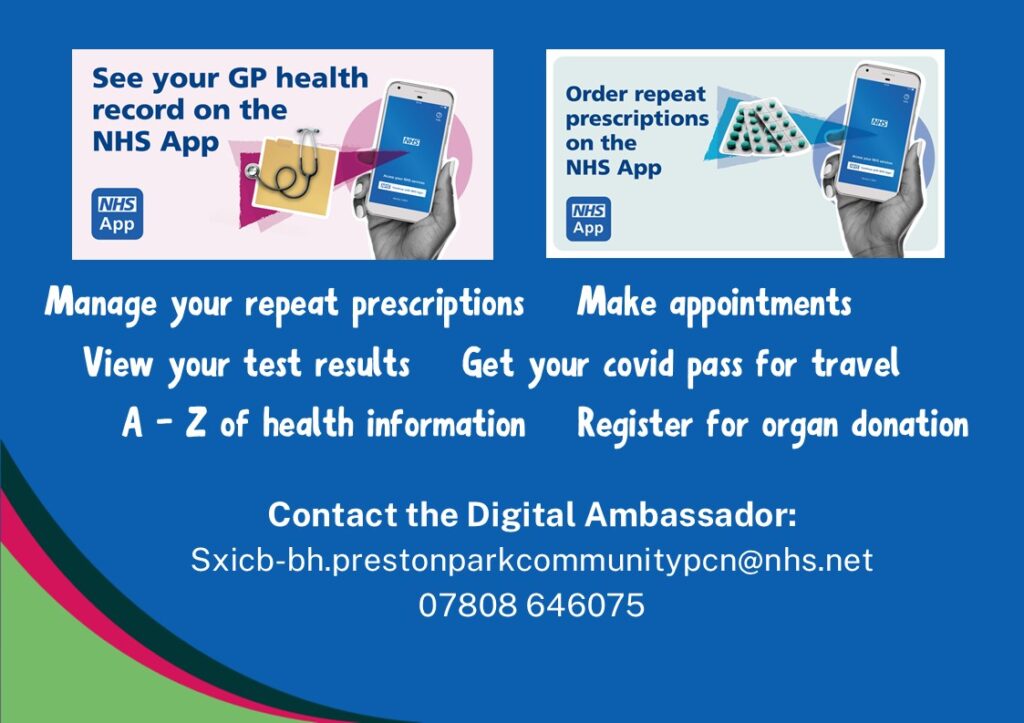Preston Park Surgery offers 1:1 support for using the NHS App and accessing your online record.